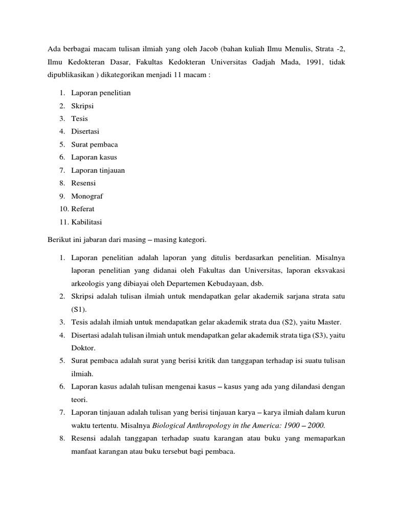 Jenis-jenis Karangan Ilmiah