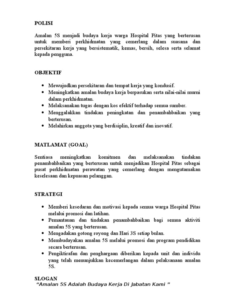 Polisi, Objektif, Matlamat , Stratergi, Slogan 5s