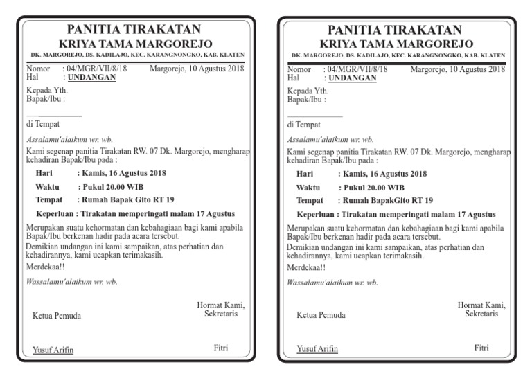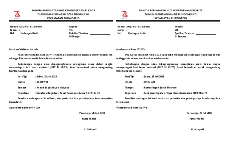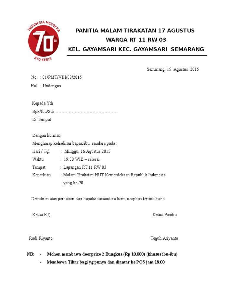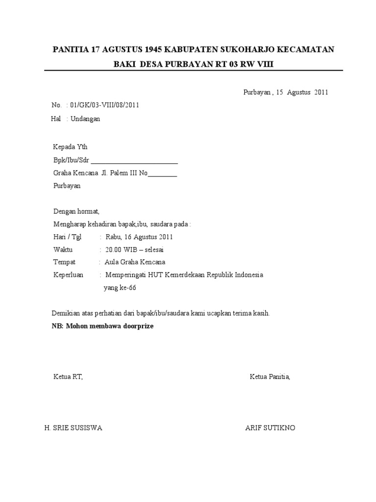 DOC) Surat Undangan Agustusan | Jennevan Trenggono - Academia.edu