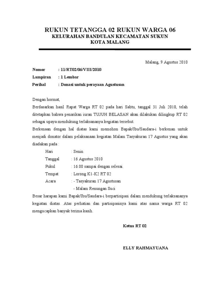 Contoh Surat Undangan Resmi Rapat Ketua RT HUT RI | Belajar Office