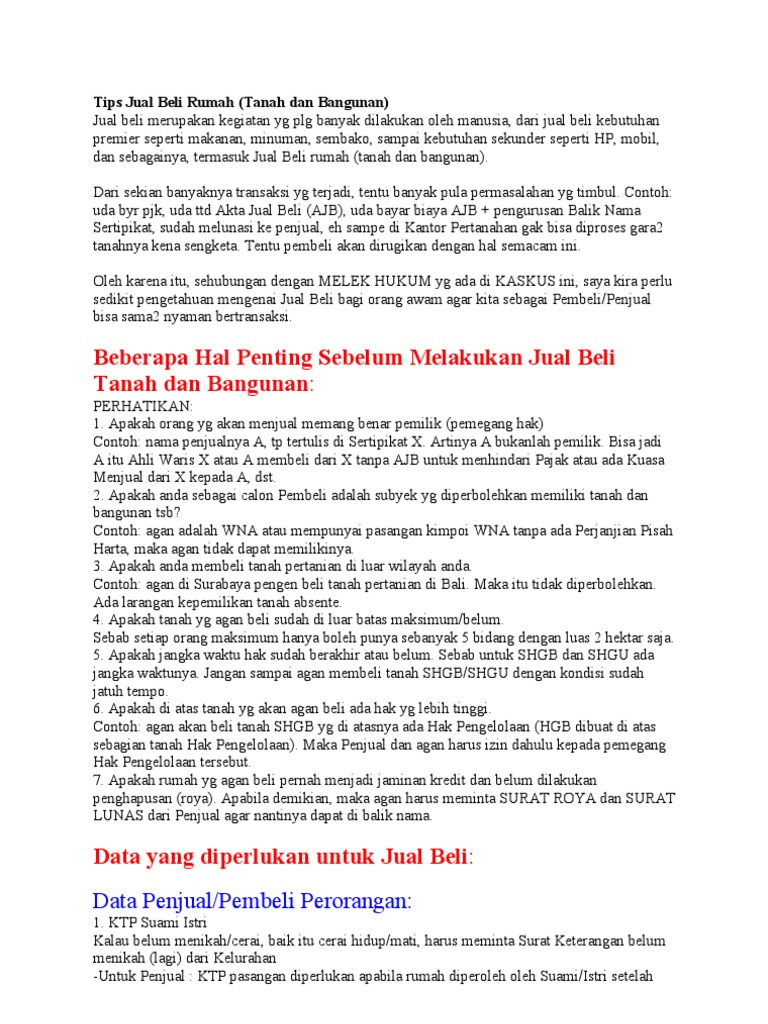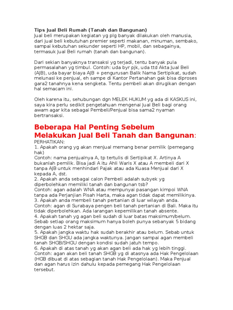 Tips Jual Beli Tanah dan Bangunan | KASKUS