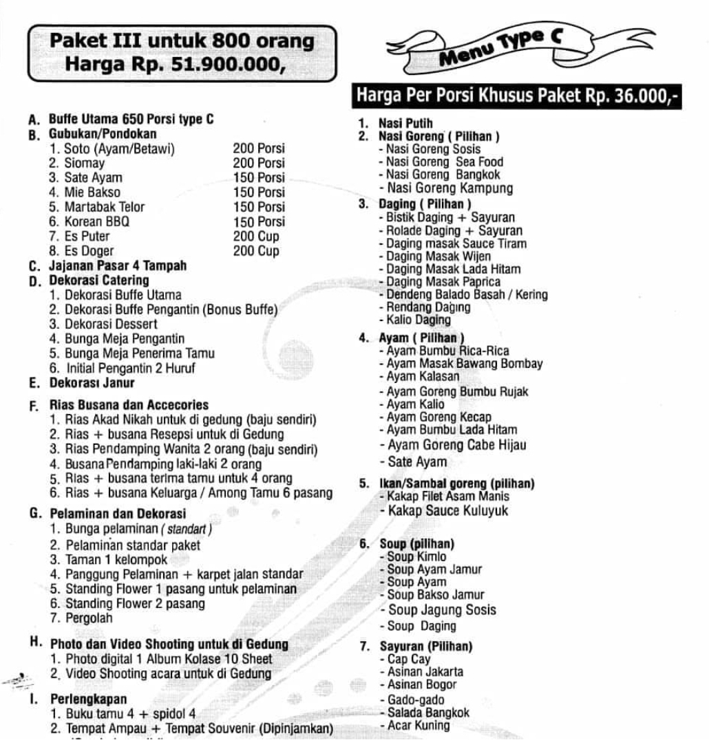 Paket Pernikahan 1000 Porsi / 500 Undangan 2020 - 2021