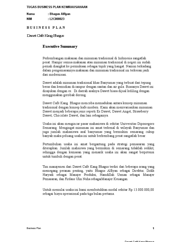 DOC) CONTOH TUGAS KULIAH BISNIS PLAN | aby kembar - Academia.edu