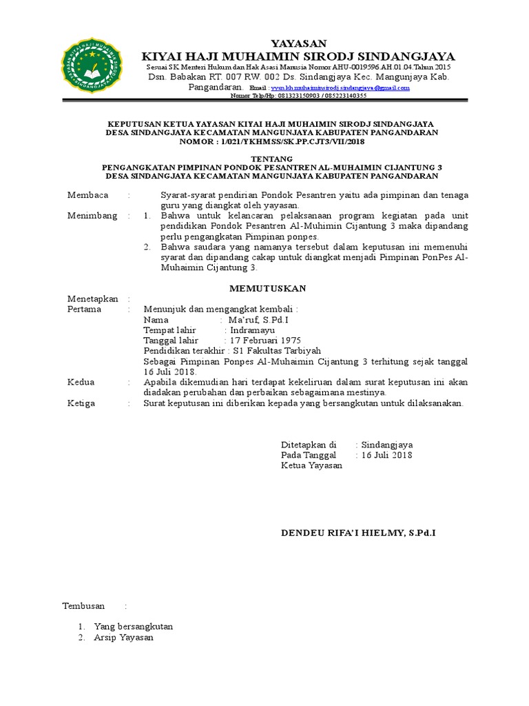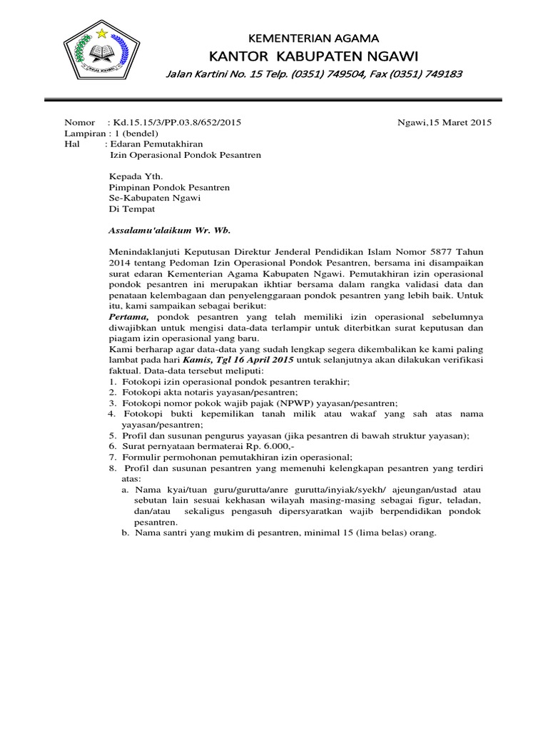 Contoh Sk Izin Operasional Pondok Pesantren - Guru Ilmu Sosial