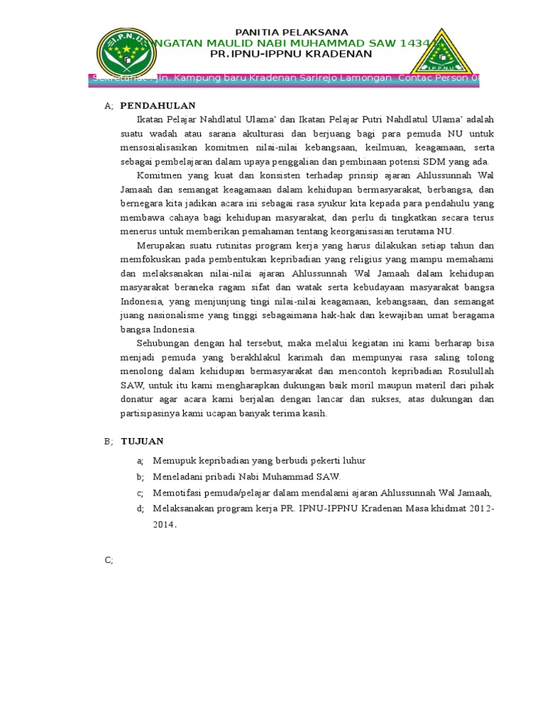 DOC) CONTOH PROPOSAL KEGIATAN PERINGATAN MAULID NABI MUHAMMAD SAW | Dhee Wyy - Academia.edu