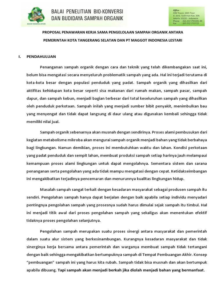 Proposal Penawaran Kerja Sama Pengelolaan Sampah Organik