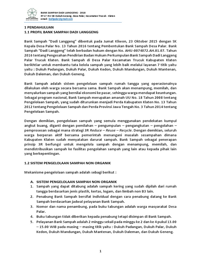 Contoh Proposal Pengadaan Sarana dan Prasarana KSM Bank Sampah