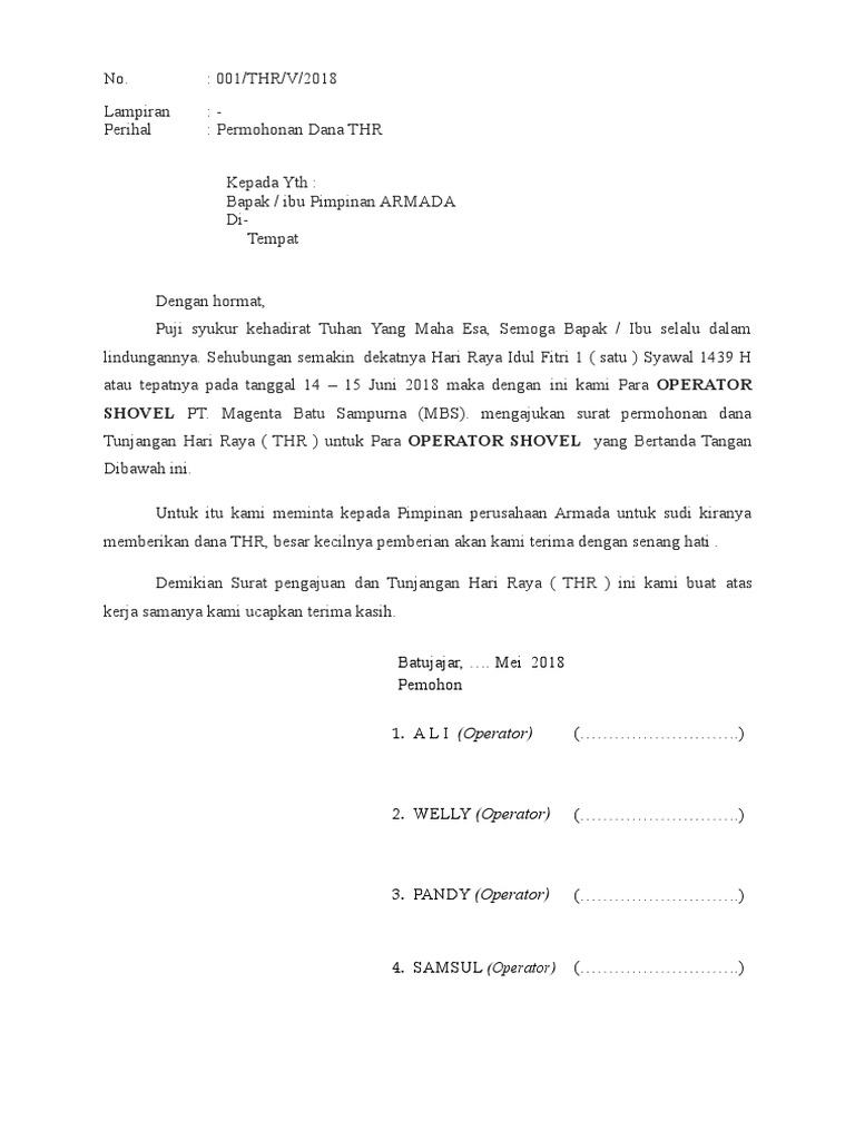 CONTOH SURAT PERMOHONAN TUNJANGAN HARI RAYA - husnuls492.com