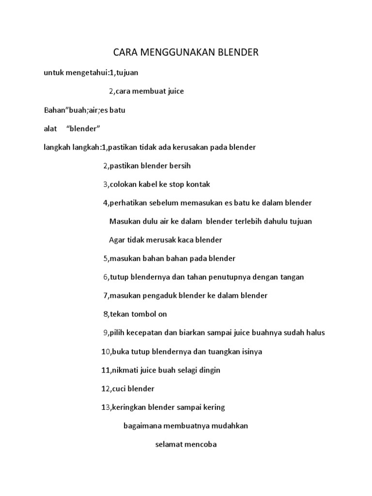 Contoh Teks Prosedur Cara Menggunakan Blender Simak – cute766