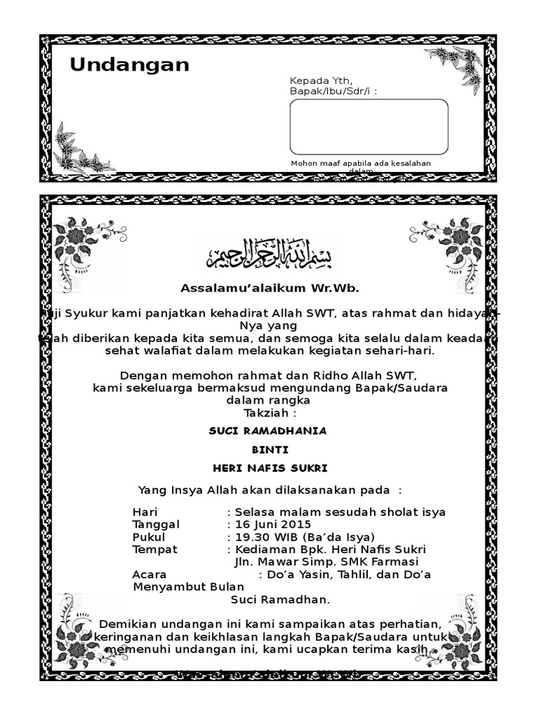 DOC) Contoh Undangan Syukuran Ramadhan Folio Bagi2 | Iin Agustian - Academia.edu