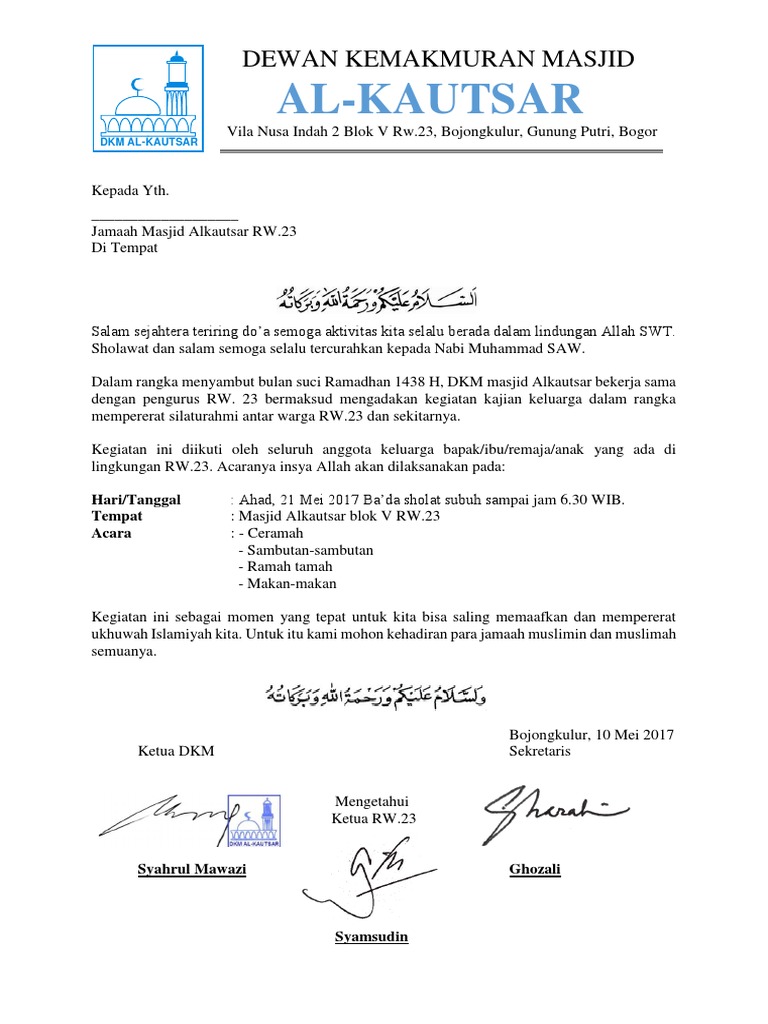 Contoh Surat Undangan Pengajian Tarhib Ramadhan - Brankas Arsip