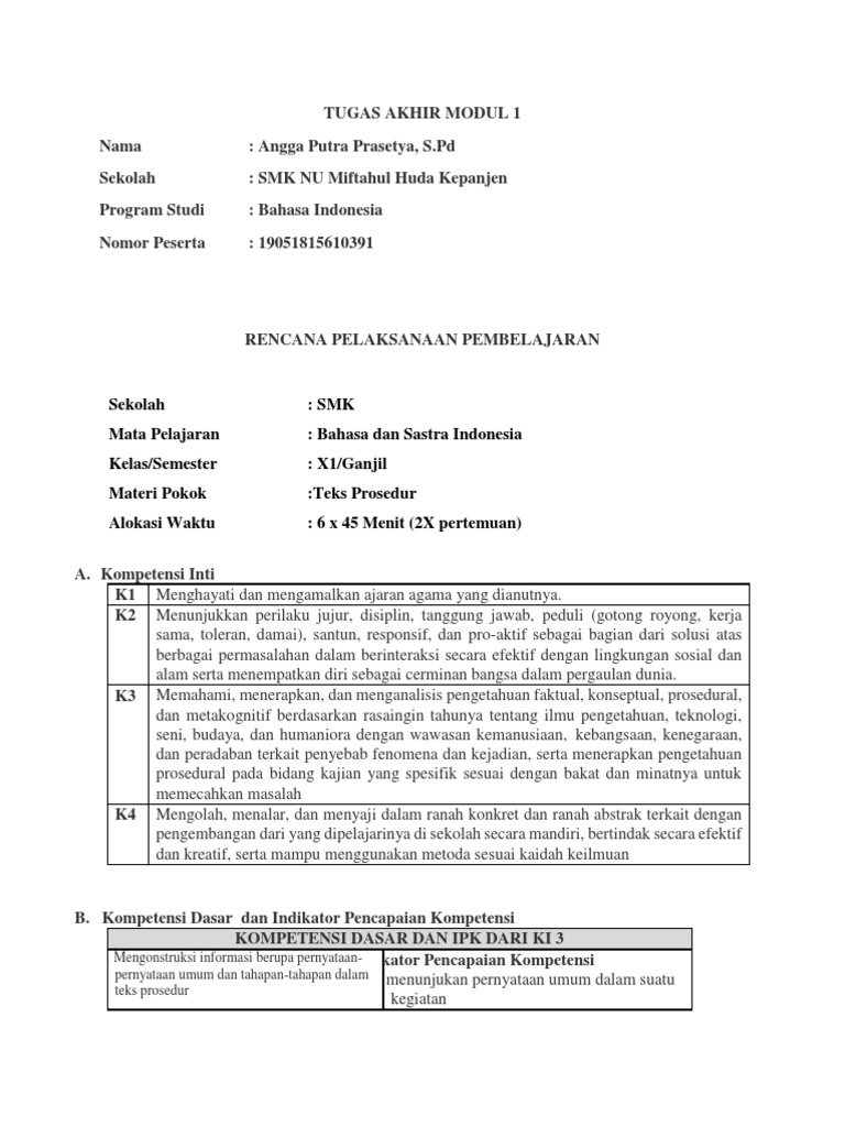 RPP KD 3.1 Dan 4.1 Teks Prosedur