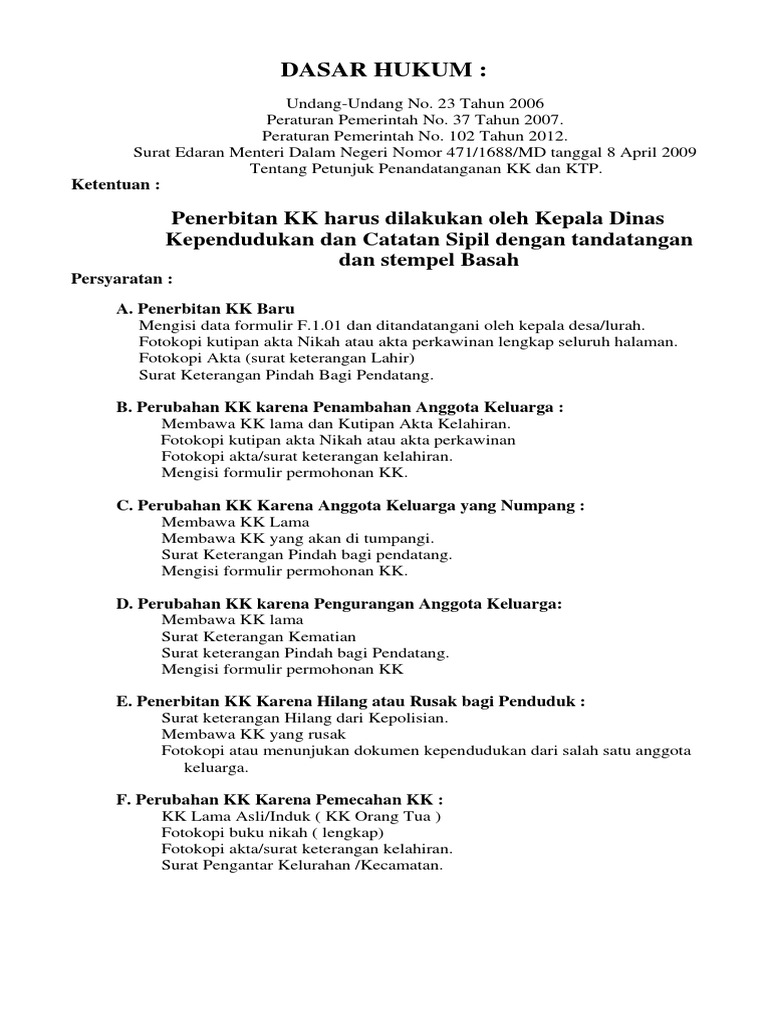 Dasar Hukum Pecetakan KK