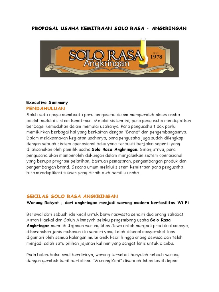 PROPOSAL USAHA KEMITRAAN SOLO RASA