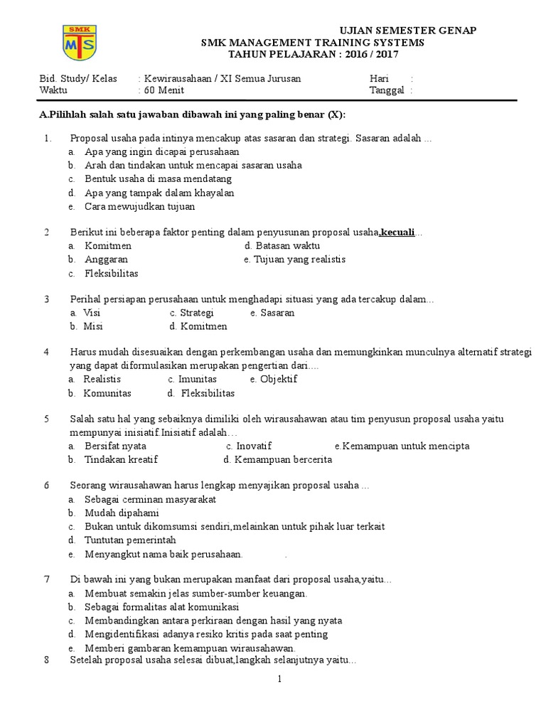 DOC) Soal kewirausahaan | umi irianti - Academia.edu
