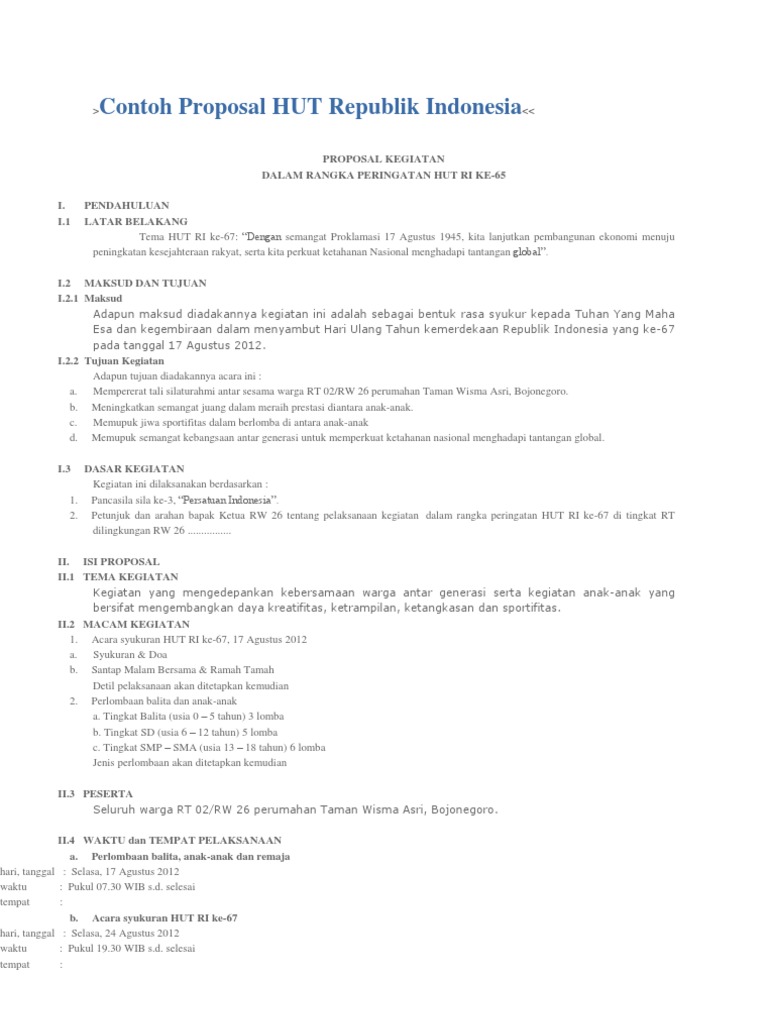 DOC) Contoh Proposal Kegiatan HUT RI | jessica fatarina - Academia.edu