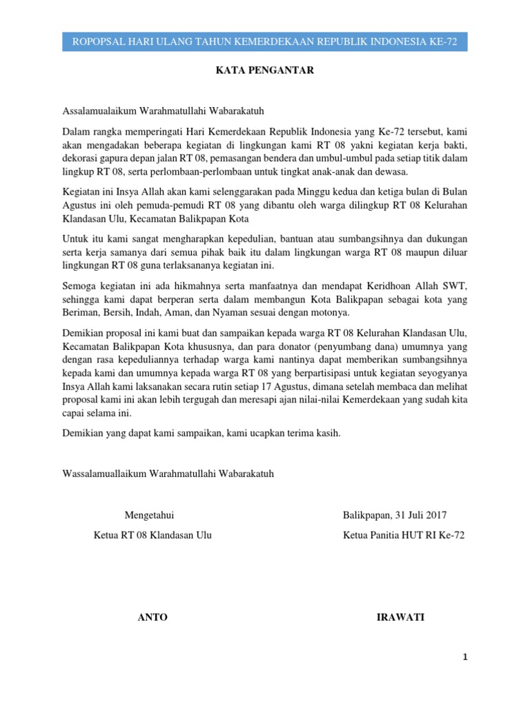 DOC) KATA PENGANTAR Proposal Panitia HUT RI | Dhimas Soeprobo - Academia.edu