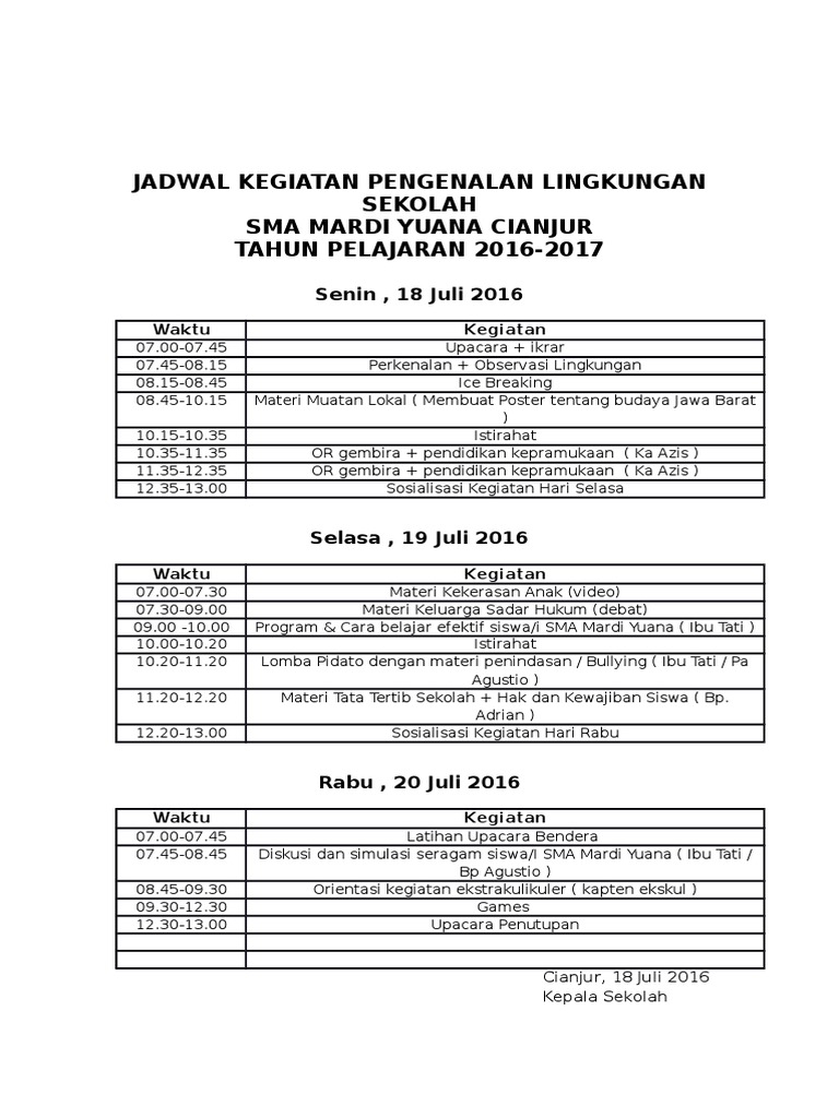Proposal Masa Pengenalan Lingkungan Sekolah
