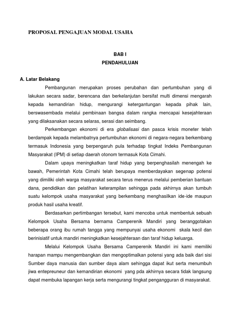 DOC) PROPOSAL PENAMBAHAN MODAL USAHA INSAN MANDIRI | Maria Dewi - Academia.edu