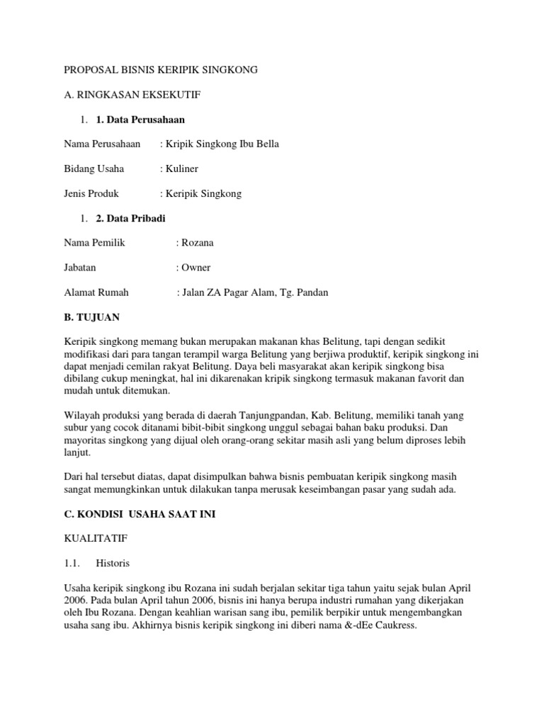 PDF) Proposal Bisnis Keripik Pisang dan Keripik Singkong | Fikri Muhjizin - Academia.edu