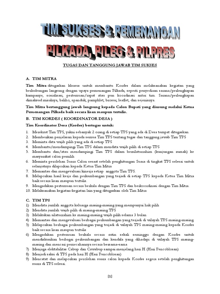 Tugas Dan Tanggung Jawab Tim Sukses
