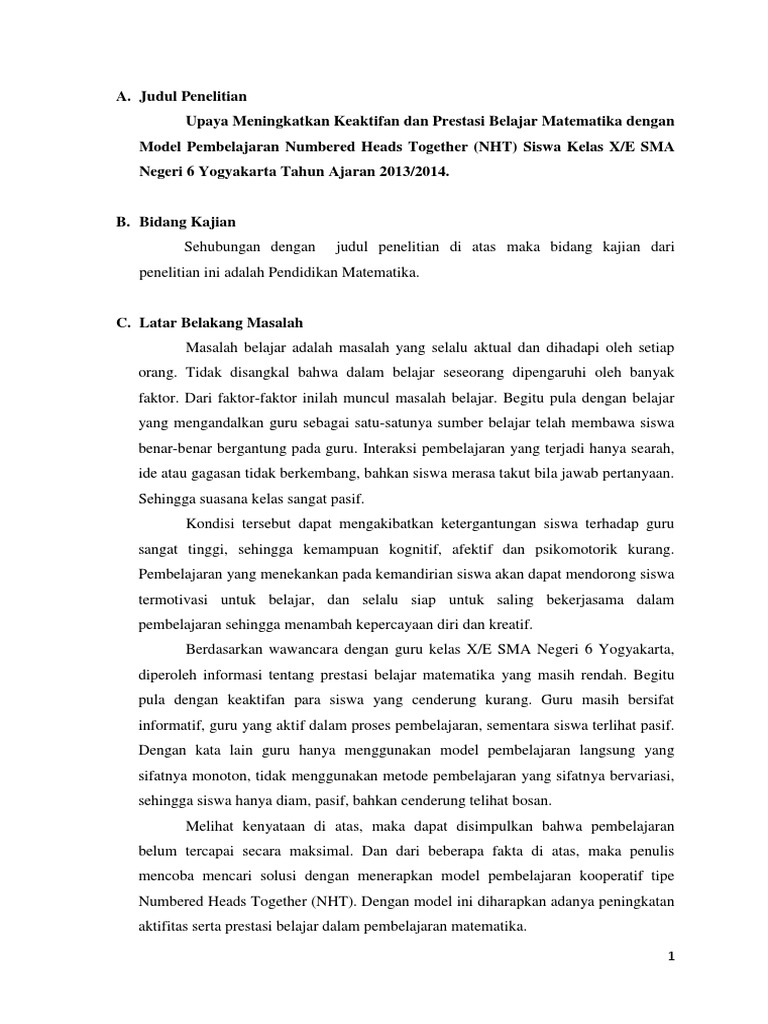 Contoh Laporan Penelitian Tindakan Kelas (PTK) Matematika SMA - INFORMASIGURU.COM