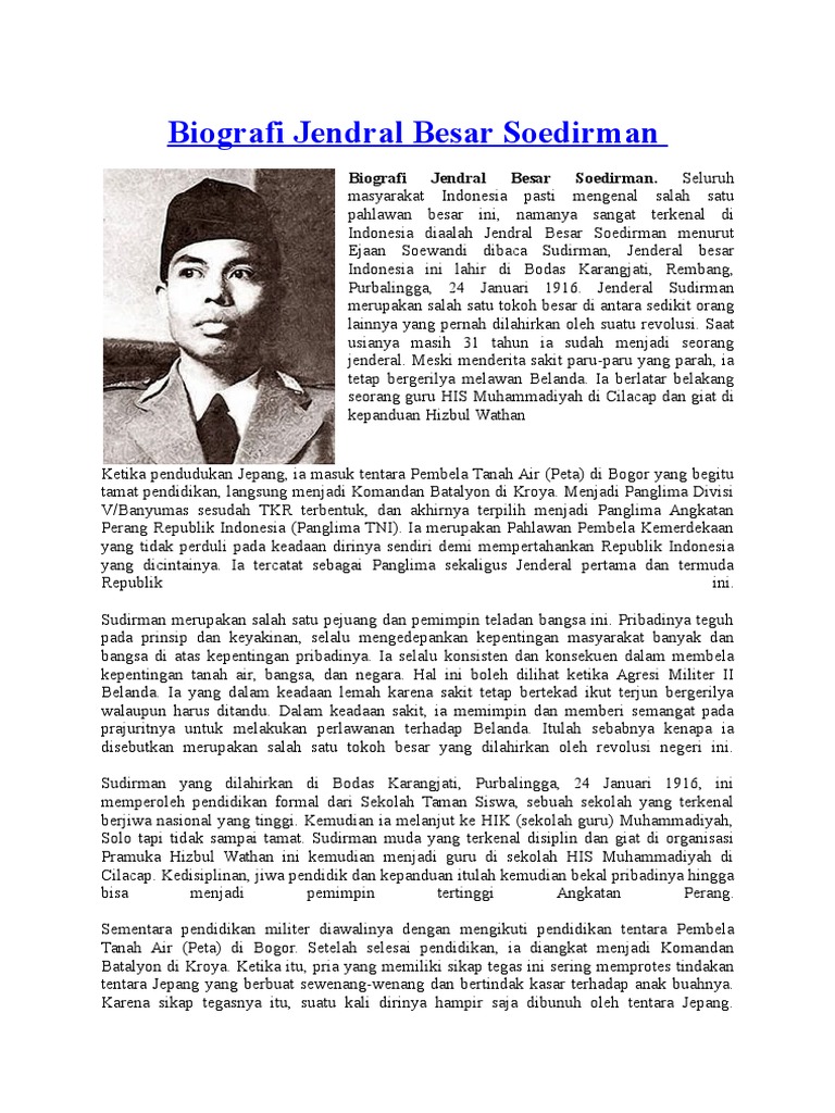 Biografi : Perjalanan Bersahaja Jendral Sudirman | Smansa-x7