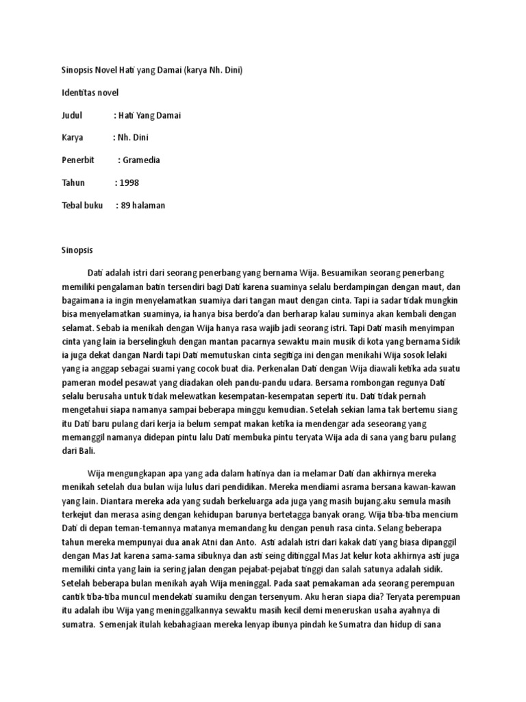 Resensi Novel Baru Milik Nh. Dini ‘Dari Ngalian Ke Sendowo’ Halaman all - Kompasiana.com