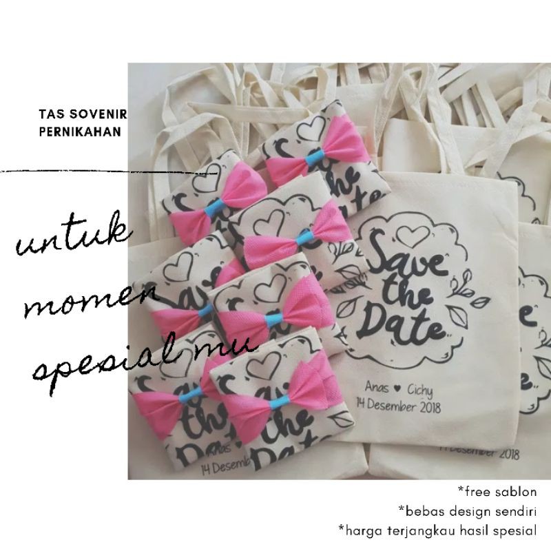 Totebag Sovenir Pernikahan Packing Pita Cantik I Tas Undangan Sablon I Tas Sovenir ukuran 20x25cm | Shopee Indonesia
