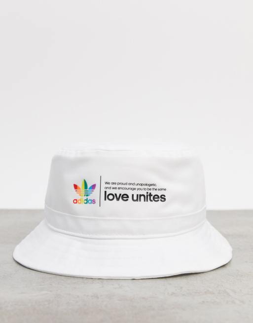 adidas Originals Pride trefoil bucket hat in white | ASOS