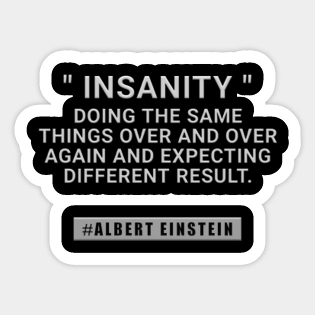 Albert Einstein Quotes insanity inspiring slogan words phrases text t-shirts, mugs, hoodies, pillows, stickers, mask - Slogan Text Phrases Words Inspiring - Sticker | TeePublic AU