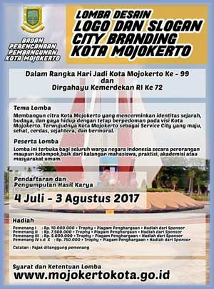 LOMBAKINI: Sayembara Logo dan Slogan City Branding Kota Mojokerto | Hadiah Utama : Rp10.000.000 | Deadline : 3 Agustus 2017
