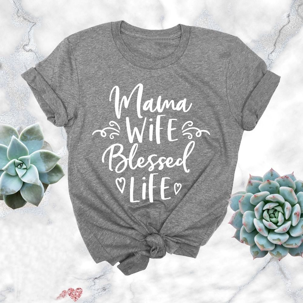 Fashion Slogan Cotton Casual Aesthetic Tumblr Tee Tops Mama Wife Blessed Life Shirt Mother T Shirt New Mom Pregnancy Women Shop For T Shirts Shop For T Shirts Online From Cactuse, $28.91|