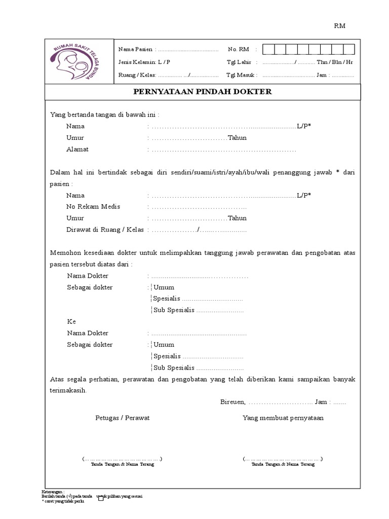Pernyataan Pindah Dokter: Tanda Tangan & Nama Terang Tanda Tangan & Nama Terang
