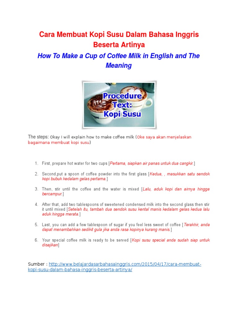 3 Cara Membuat Kopi Susu dalam Bahasa Inggris dan Terjemahannya - ContohText