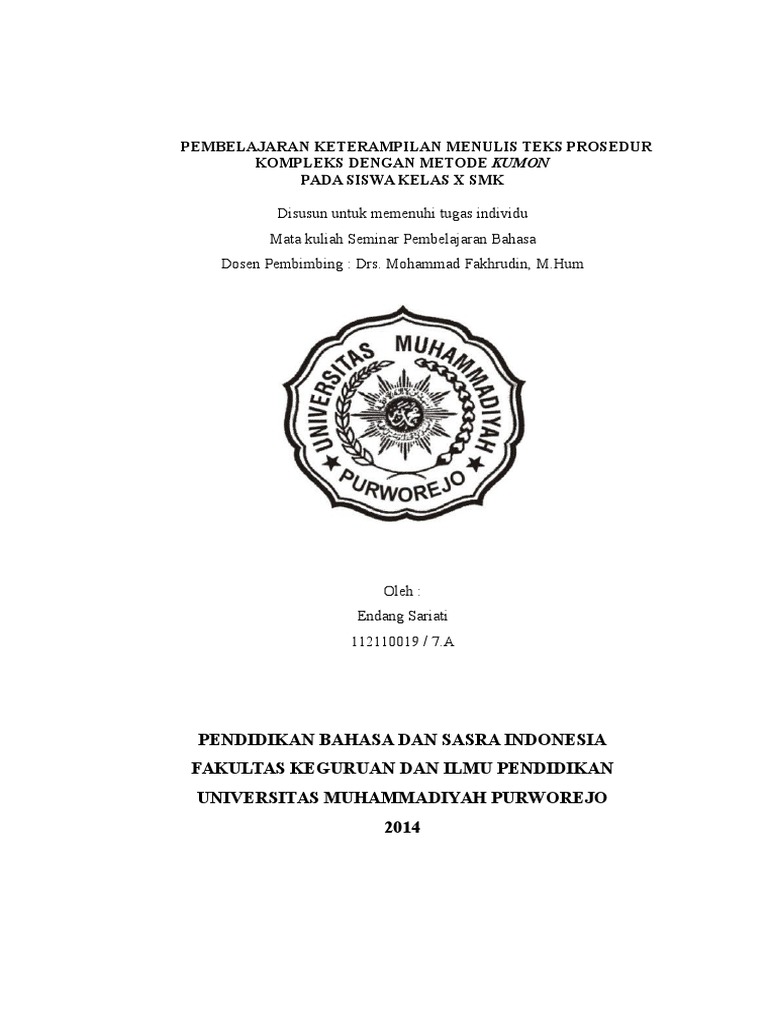 Pembelajaran Keterampilan Menulis Teks Prosedur Kompleks Dengan Metode Kumon