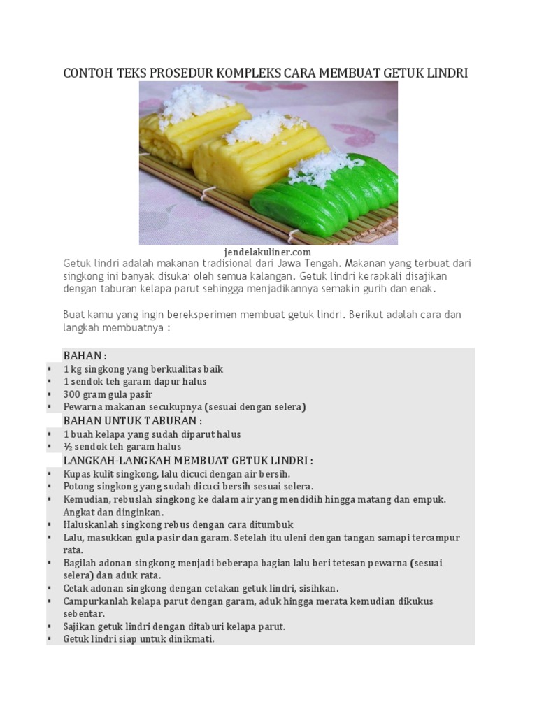 DOC) TEKS PROSEDUR KOMPLEKS CARA MEMBUAT GETUK LINDRI | hh iii - Academia.edu