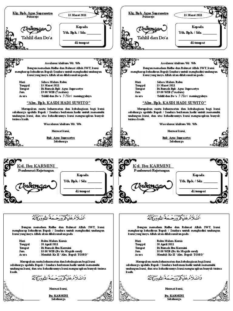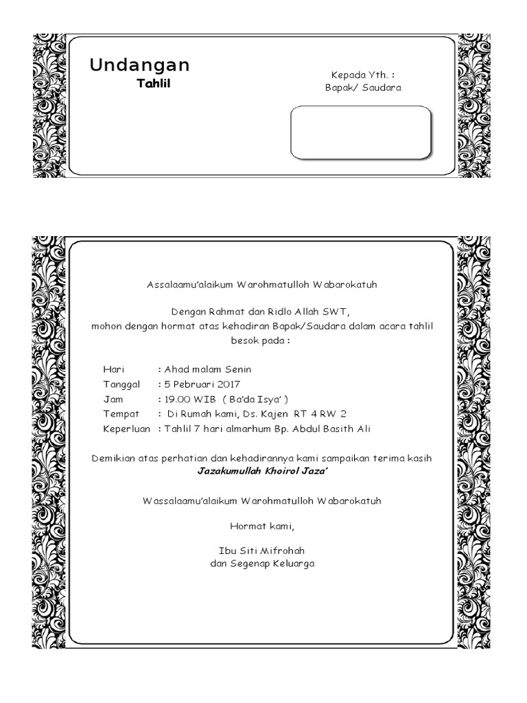 DOC) Contoh Undangan Tahlilan 40 Hari Meninggalnya | Haekal Iqbal - Academia.edu